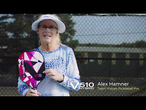 The Vulcan V510 Hybrid Pickleball Paddle is designed for all-court players who mix up shots with variety. Produces a blend of power and control. Features the Modern Shape, with standard 13mm polypropylene core with carbon fiber V-Skin surface. Vulcan Max Control Grip at 4-1/4”. Paddle is made to 7.9 oz (+/- .2). Standard Weight. Available in Blue Geo, Light Geo, and Pink Geo design.
